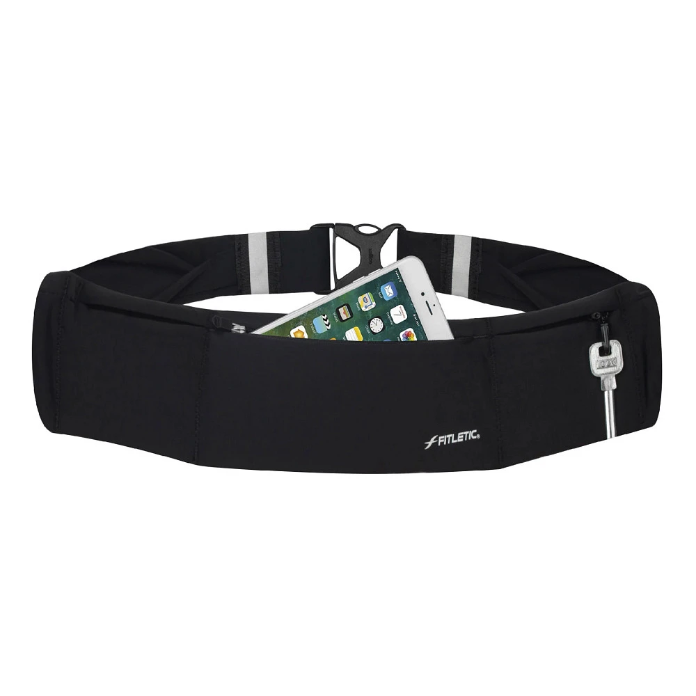 Fitletic® 360 :: This lightweight belt has a total of three roomy pockets to will fit all your essentials such as your keys, phone, credit cards, passport, medical supplies and more. Two quick-access pockets on either side separate your gear while keeping them handy. The main pocket secures your valuables with a zipper. A convenient key clip keeps your keys secure and out of the way. The interior pocket provides secure stowage for your ID and cash. The 360 degree belt is the all-around perfect solution for biking, hiking, and any outdoor activity!