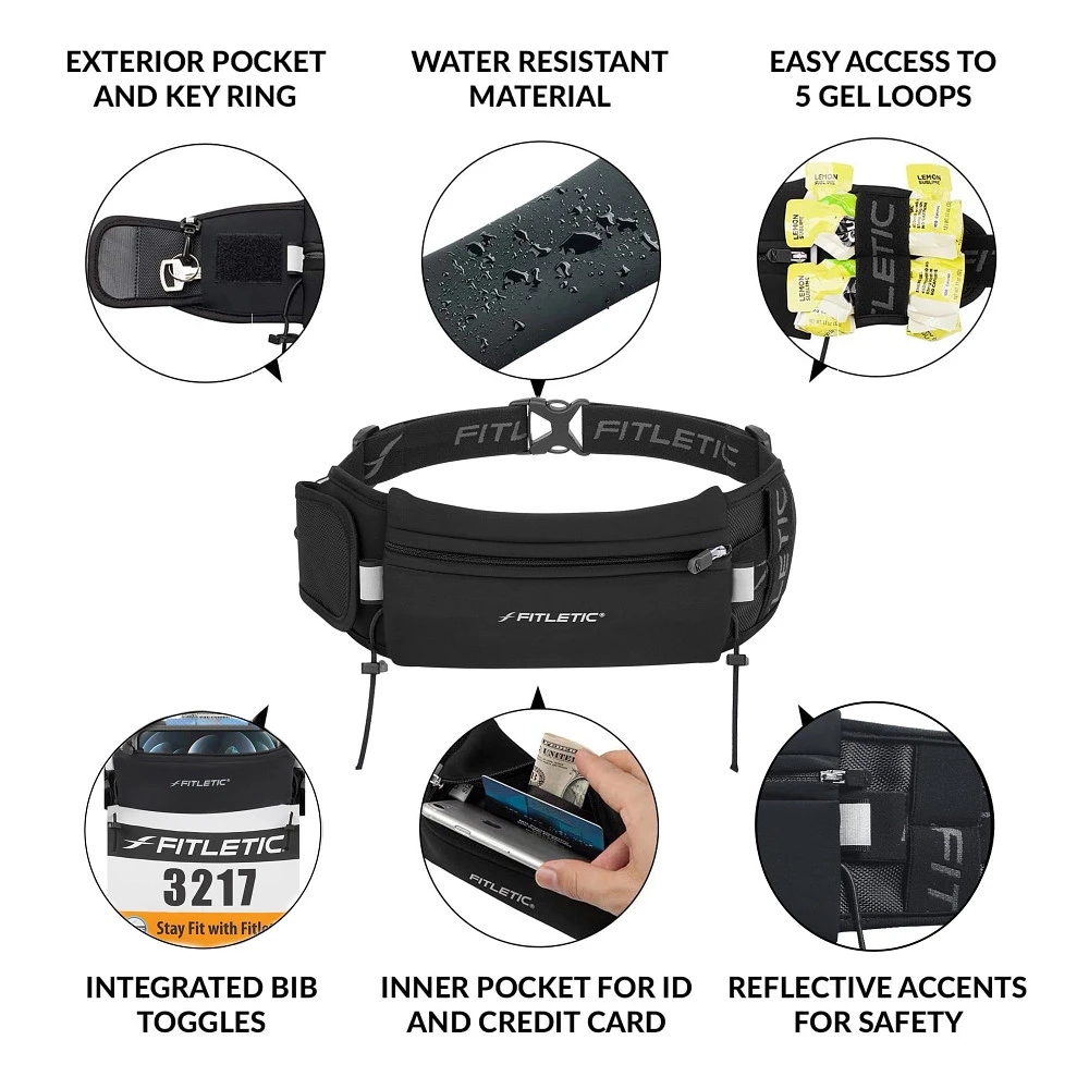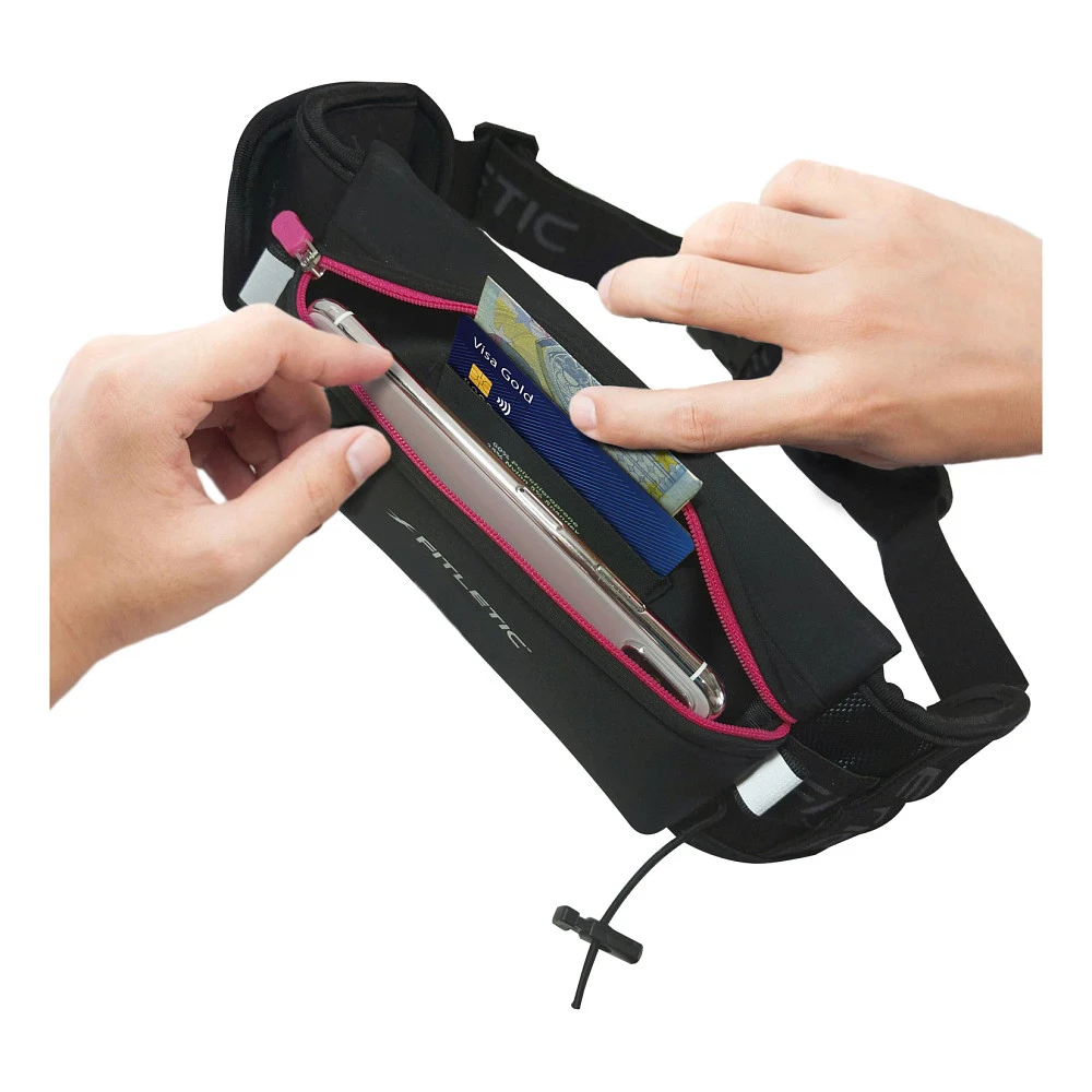 Fitletic® Ultimate II :: Engineered for the high-endurance athlete, the Ultimate Belt is the first refueling belt of its kind. The patented design allows you to carry enough fuel to go the distance without compromising on performance. It is ideal for rigorous activities, extreme sports, alpine skiing, long hikes, marathons, and extended bike rides. Like all our running and fitness belts, the Ultimate I and II does not bounce, chafe, or ride up on your hips.