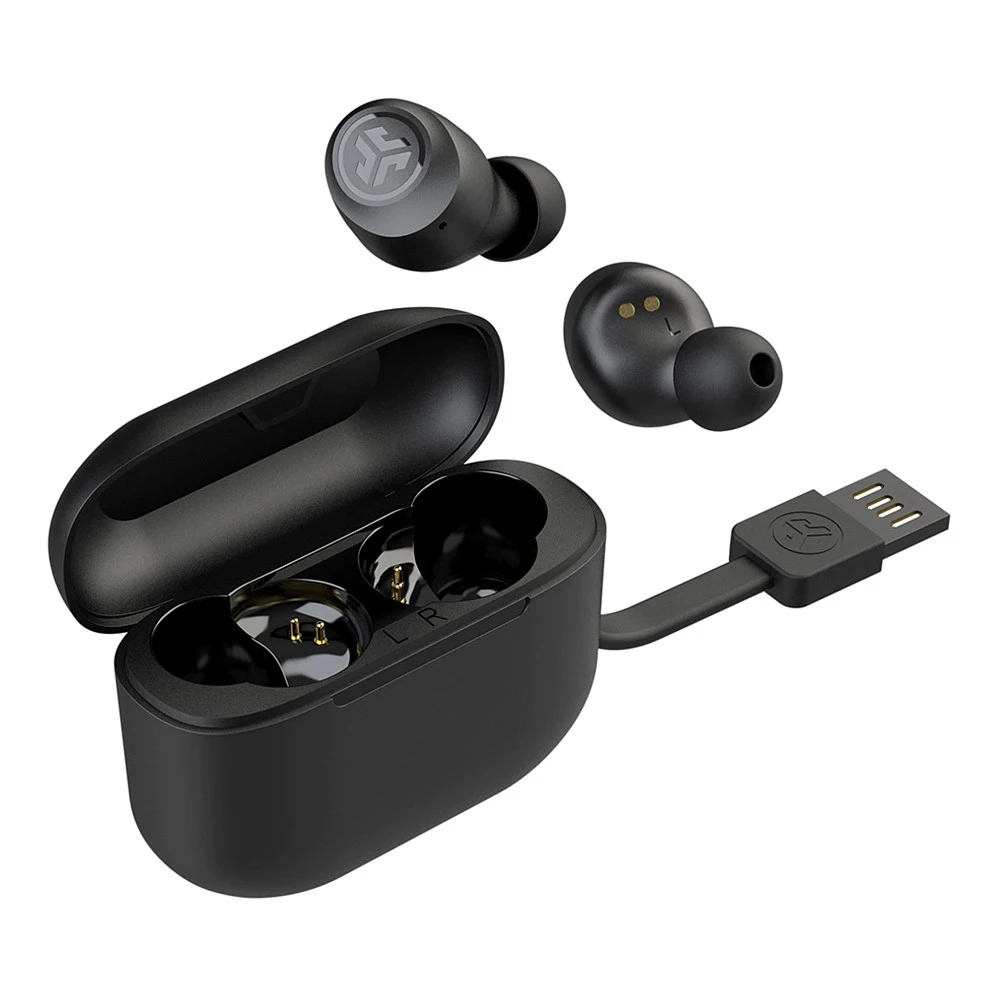 JLAB® AUDIO GO AIR POP TRUE WIRELESS HEADPHONES :: Crank up the beats with JLab Audio Go Air Pop True Wireless Headphones. Custom EQ³ sound and Bluetooth 5 with an upgraded antenna bring you the clearest audio experience yet. Sweatproof, splashproof, soft gel tips are a 15% smaller fit than the GO Air and 40% lighter, with a fit so snug you’ll forget they’re in. With 32+ hours of playtime and the slimmest charging case, you can tune the world out and get in your zone anywhere, anytime.