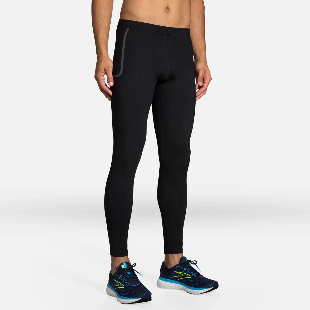 Men’s BROOKS® MOMENTUM THERMAL TIGHT :: Stay toasty in Men’s Brooks Momentum Thermal Tight that are now warmer than ever. A flat waistband keeps these tights from creeping up while breathable DriLayer® fabric wicks away sweat and keeps warm air close to your body. No-bounce pockets let you tote all your essentials in sustainably made pants that’ll keep you motivated on every run.