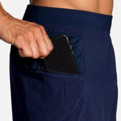 Men’s Brooks® Sherpa 7″ 2-in-1 Short :: Pop into your Men’s Brooks Sherpa 7″ 2-in-1 Short for sleek-fitting comfort. You get plenty of pockets for toting essentials without the bulky look of cargo shorts. Sweat-wicking DriLayer® fabric keeps you feeling fresh while a mesh inner layer adds support and features a sweat-resistant pocket for your smartphone.