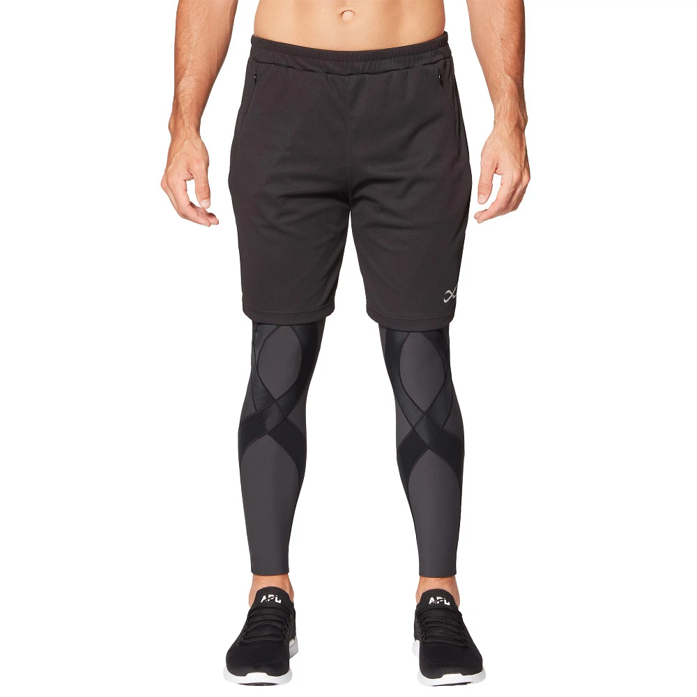 Men’s CW-X® Endurance Generator Insulator Joint and Muscle Support Compression Tights :: The CW-X® Endurance Generator Compression Tights offer unparalleled support to muscles and joints during high endurance activity. Features a patented EXO-WEB support panel to contour your muscles and joints to provide support and stability without restricting your body ‘s range of motion. These tights combine compression with the benefits of kinesiology tape. Target areas: hip flexors, quads, hamstrings, calves, hip and knee joints.