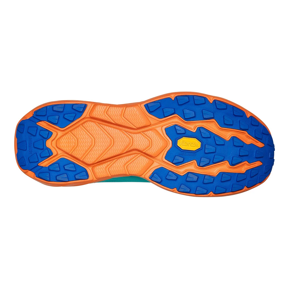 Men’s HOKA® ZINAL :: Attack technical trails in the grippy “gecko-like” new Men’s HOKA Zinal trail running shoes. The perfect blend of speed and agility features the PROFLY™ dual-density midsole with ultralight foam on top and rubberized cushion on the bottom. The stripped-back mesh upper is made from recycled yarns with a gusseted tongue designed to keep trail debris out. For maximal traction and minimal weight, your Zinal is finished with the awesome Vibram™ Litebase outsole.