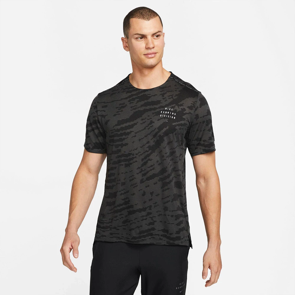 Men’s NIKE® DRI-FIT RUN DIVISION RISE 365 SHORT SLEEVE :: Go hard and stay cool in your new and improved Men’s Nike Dri-FIT Run Division Rise 365 Short Sleeve. Lightweight, soft, and ventilated; this shirt is designed with runner-informed data for cooling and optimal performance. The open-hole knit fabric is strategically placed in high-heat zones. Dri-FIT fans will also love that it’s made from 100% recycled polyester fibers. Plus, the iconic Nike chevron detail nods to a classic look.