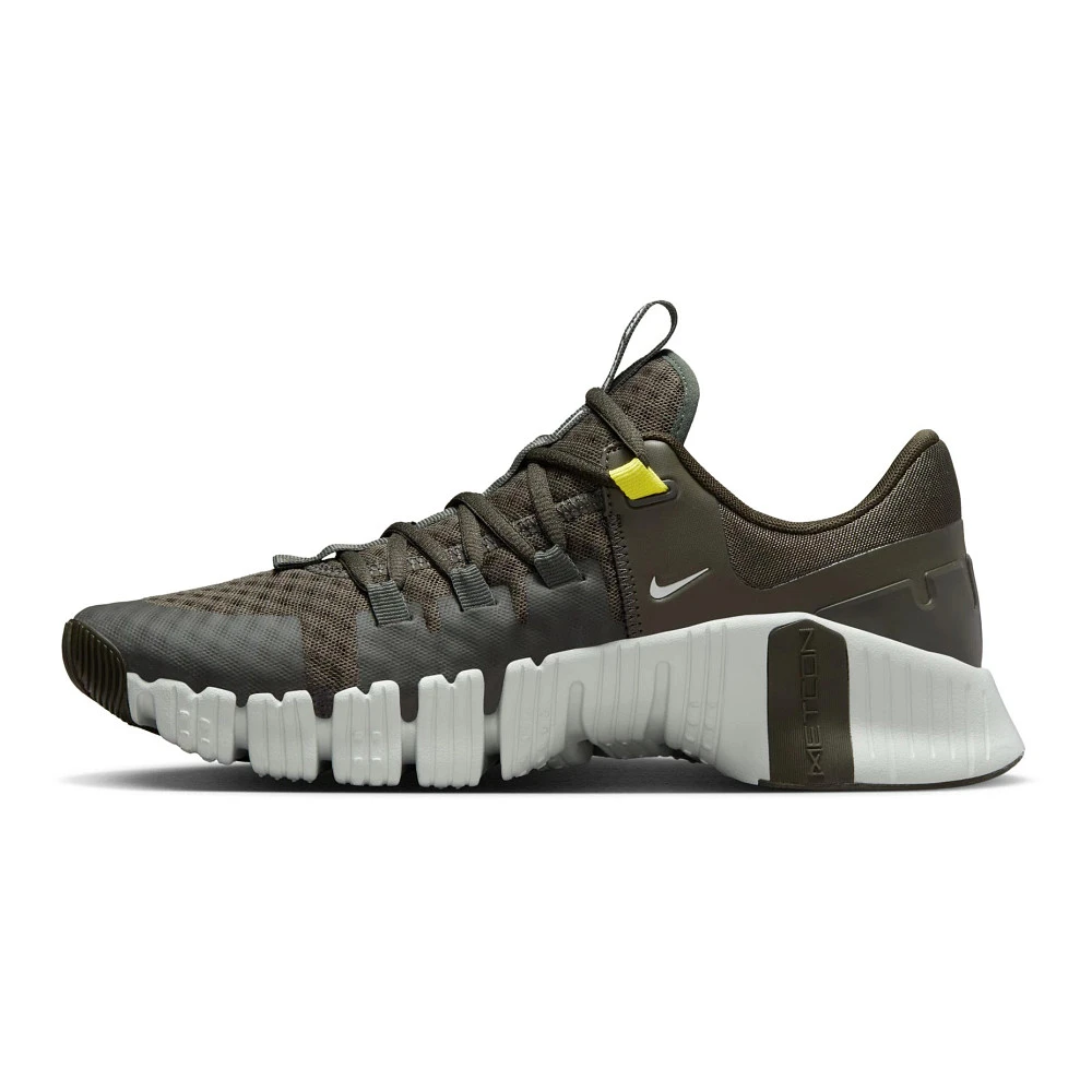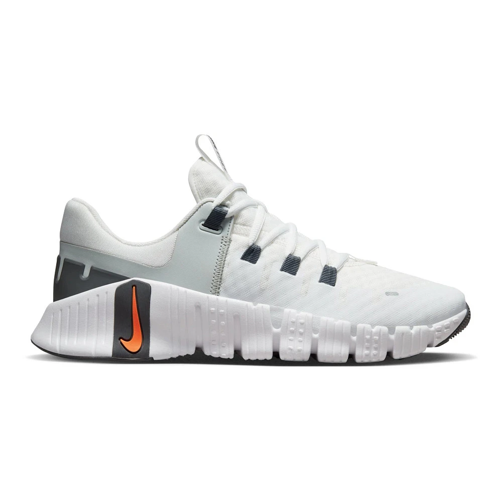 Men’s NIKE® FREE METCON 5 :: No more sacrificing comfort for strength! Your updated and innovative Men’s Nike Free Metcon 5 cross training shoe was made especially for the active and adventurous. It has an ultra-comfy new upper with a ton of cushion for added ankle support and 7/8 length bootie that’s way easier to slide into, while retaining the wide base and stability of its predecessors so you can get deeper into squats. With several new colors in the Free Metcon 5, you get a striking look with all kinds of power to crush your routine.
