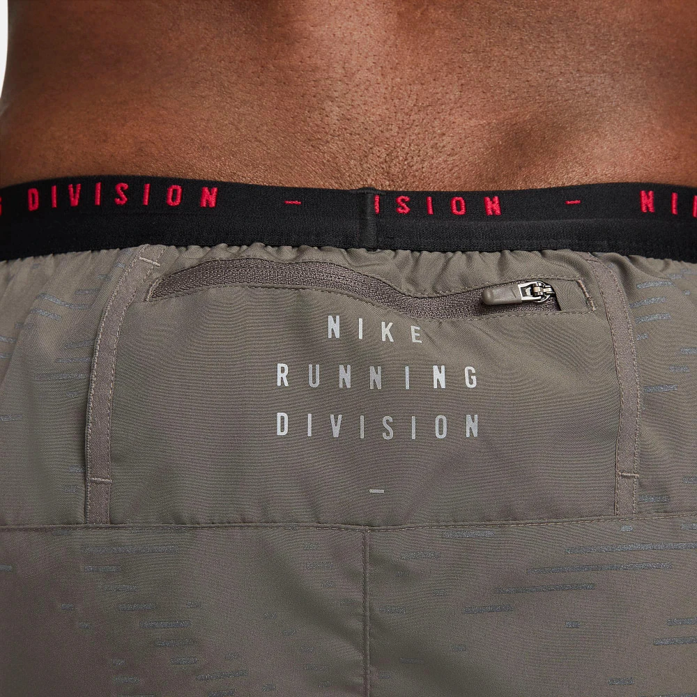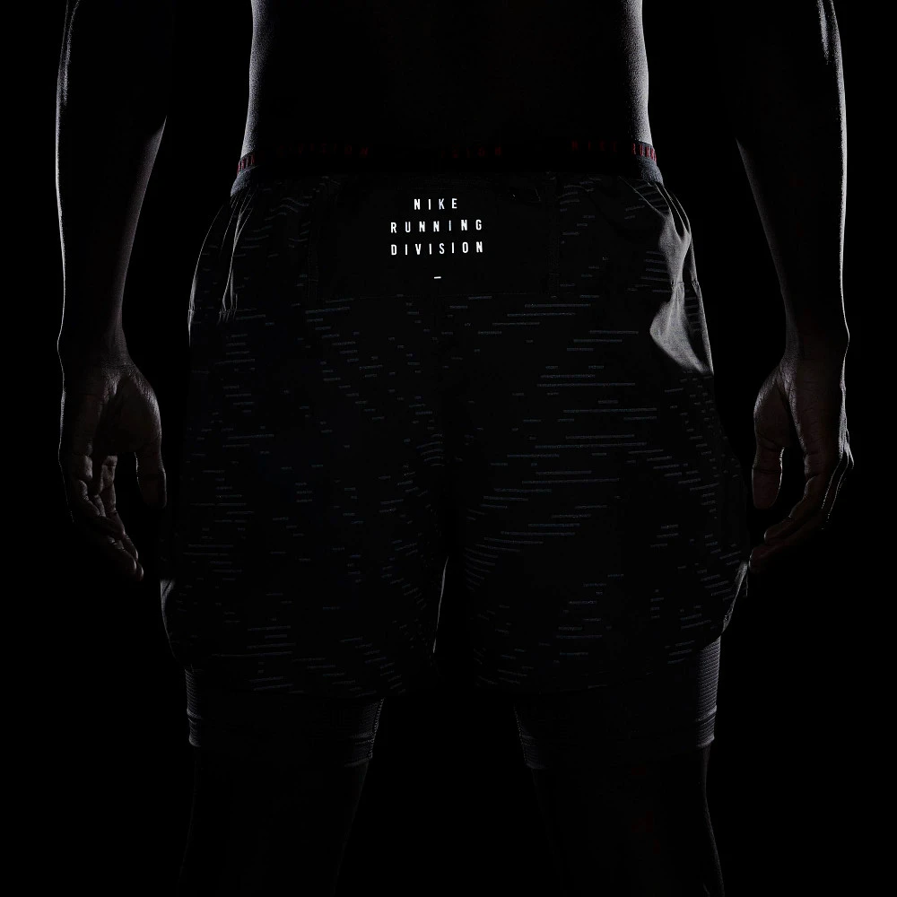 Men’s NIKE® RUN DIVISION FLEX STRIDE 2-IN-1 5″ SHORT :: Hit your stride night or day in your Men’s Nike Run Division Flex Stride 2-in-1 5″ Short. Combining supportive Dri-FIT technology with reflective elements on a stretchy woven fabric, enjoy a visibly smooth, lightweight feel. Its 2-in-1 design has an inner layer and outer shell, plus a molded gusset for unrestricted motion. An adjustable waistband allows custom fit, while the back zippered pocket provides secure storage for essential items.