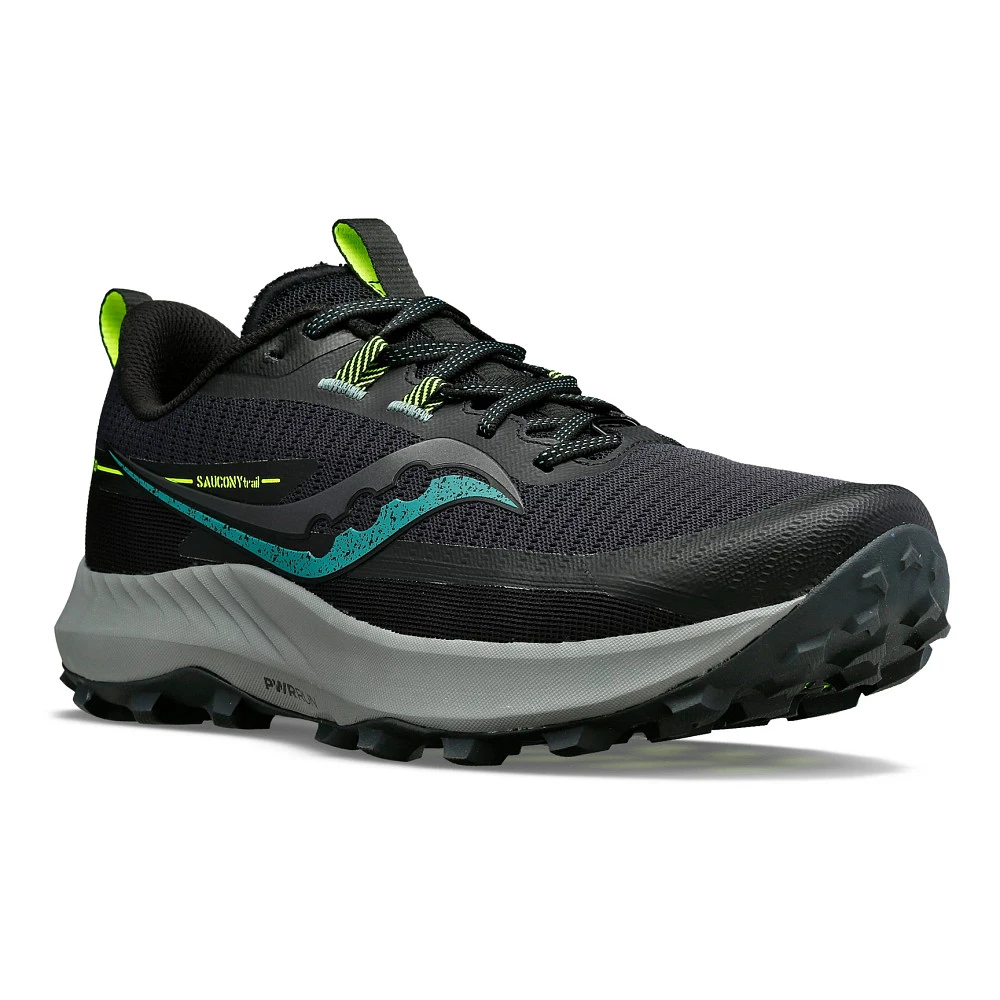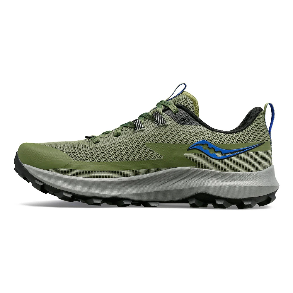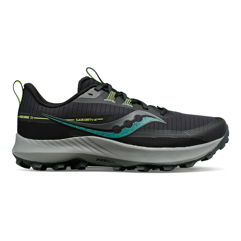 Men’s SAUCONY® PEREGRINE 13 :: Free your feet with lightweight speed! Your updated Men’s Saucony Peregrine 13 trail running shoes maintain the same PWRTRAC outsole and rockguard that make this shoe extra tough, and magical PWRRUN foam midsole that ensures ultimate off-road comfort. But this model lost even more weight (yes, you read that right!). Coming in at just 9.2 oz, you’ll be shocked at the mileage you accomplish and energy you save. With sleek new colors and small tweaks to every detail of the shoe, your Peregrine 13 offers an elevated experience while maintaining the comfort and rugged function you love from this series.
