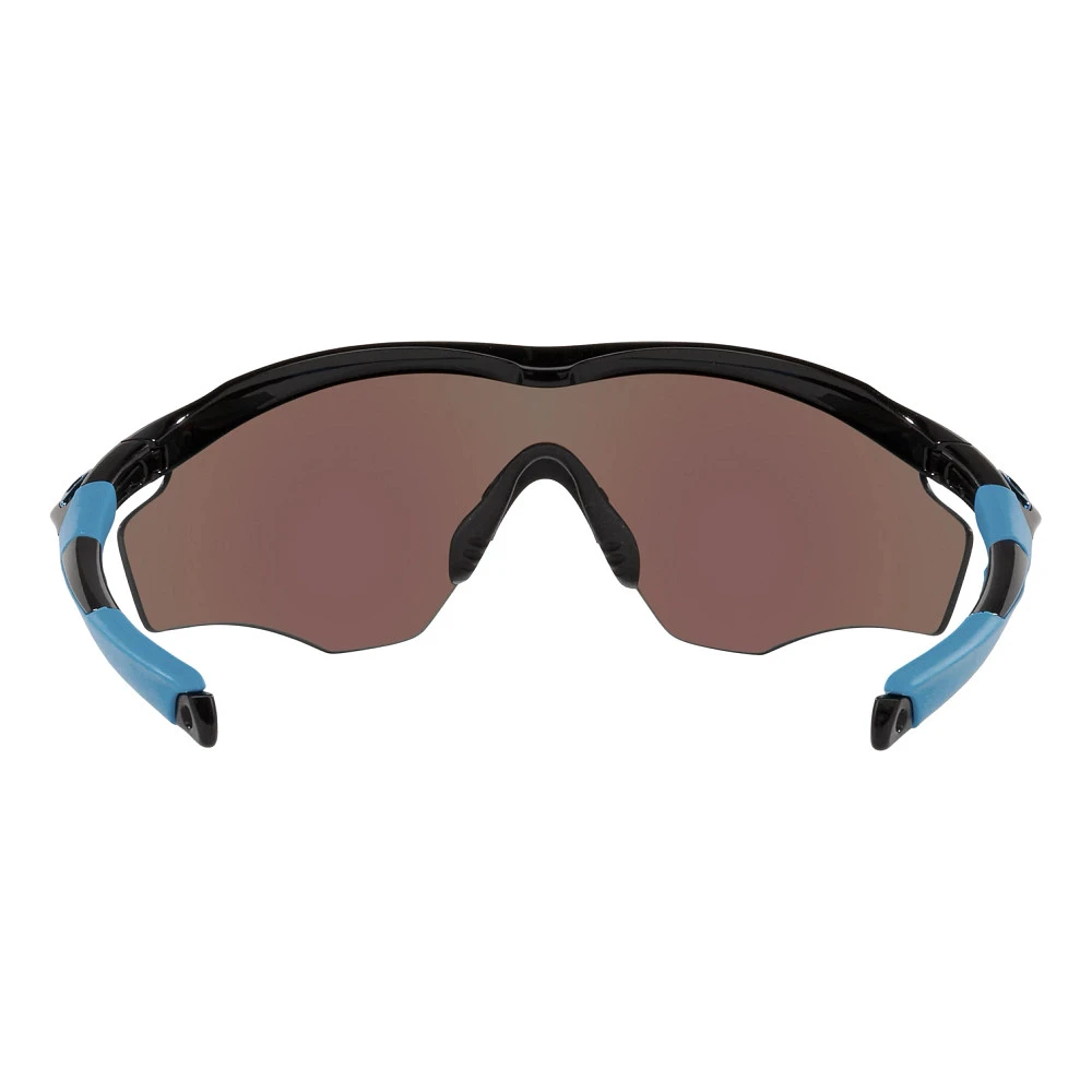 Oakley® M2 XL PRIZM Sunglasses :: Get the edge on your fitness goals wearing your Oakley M2 XL Prizm Sunglasses. Made with state-of-the-art Prizm lenses with a taller height, your range of view is expanded so that slight head tilts during activities like cycling are never an issue. No matter how or where you’re training, interchangeable lenses ensure you can focus on the road ahead while your shades work efficiently in every environment. Sweat on without slip or bounce thanks to Unobtainium® earsocks and nose pads holding them securely in place.