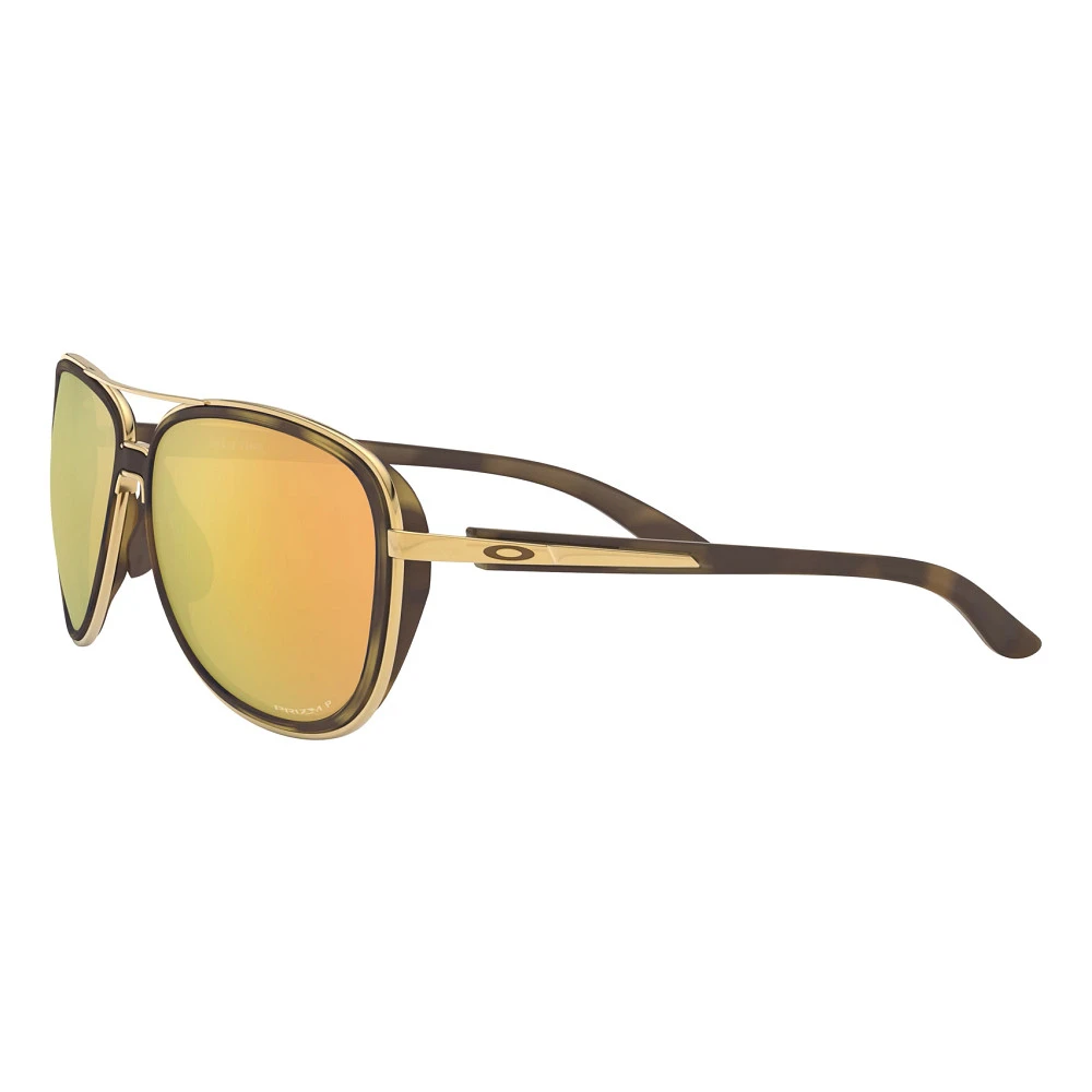 Oakley® Split Time PRIZM Rose Gold Sunglasses :: Aviator shades get an upgrade in the Oakley Split Time PRIZM Rose Gold Sunglasses. Best suited for small to medium faces, a hat compatible design makes these great for daily wear. PRIZM™ lenses enhance color and contrast while side shields combat backside glare. A comfy three-point fit and Unobtainium™ nosepads keep glasses from slipping even while you’re sweating.