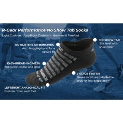 R-Gear Drymax® Light Cushion No Show Tab 3 Pack :: Step up your running and training from the ground up with R-Gear Drymax Light Cushion No Show socks. Just the right amount of comfy cushion topped off with a dialed-in fit all while keeping your feet 25 times dryer than other socks. These hardworking socks are your best defense against blisters, hot spots, bunching and stinking and are so durable they’ll last over 1,000 miles! All the protection you want with the no-show style you love.