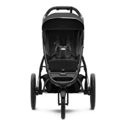 - Easy to maneuver, thanks to the swivel front wheel that locks into place for jogging, and to the 16-inch rear wheels