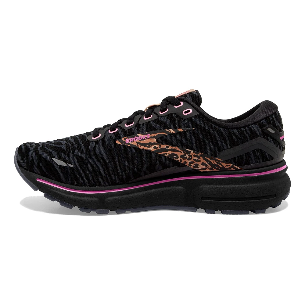 Women’s BROOKS® GHOST 15 RUN WILD :: Unleash your inner queen of the jungle wearing the special edition Women’s Brooks Ghost 15 Run Wild. Fierce prints throughout the shoe will make you the ‘mane’ attraction during every race. A new midsole offers lighter comfort thanks to plush DNA Loft v2 cushioning. Your daily trainer weighs 8.8 oz: that’s even less than the Ghost 14! An engineered air mesh upper is 3D printed to ensure perfection and breathability. Start building up your mileage because your Ghost 15 Run Wild has High Performance Rubber in the heel for durable road protection.