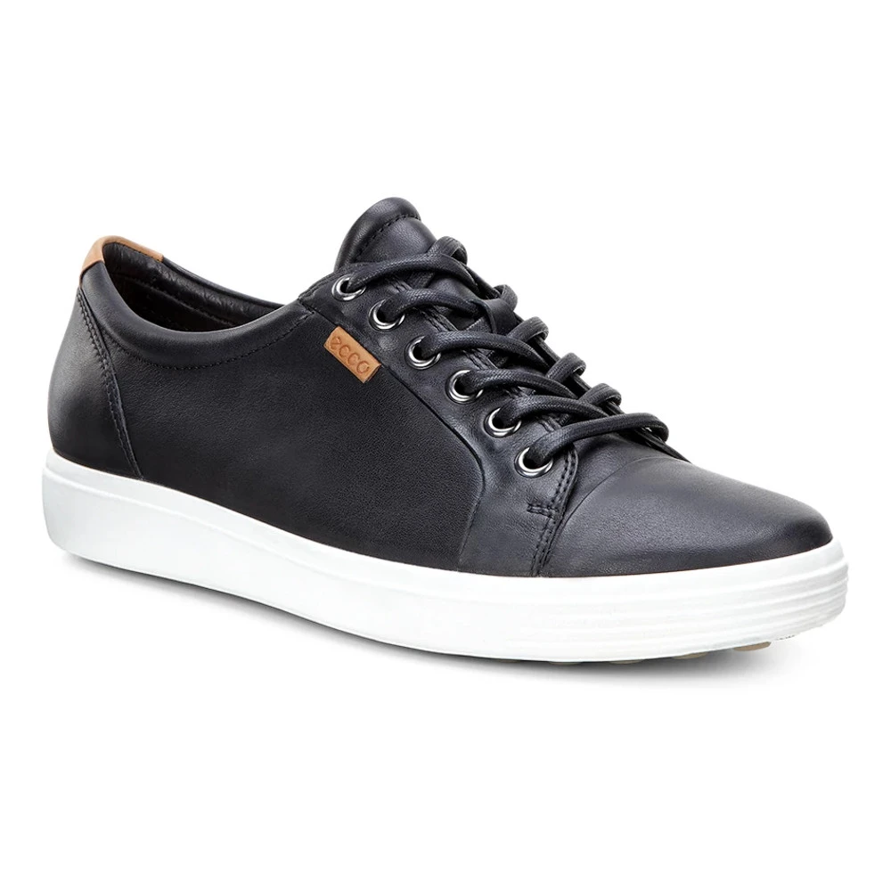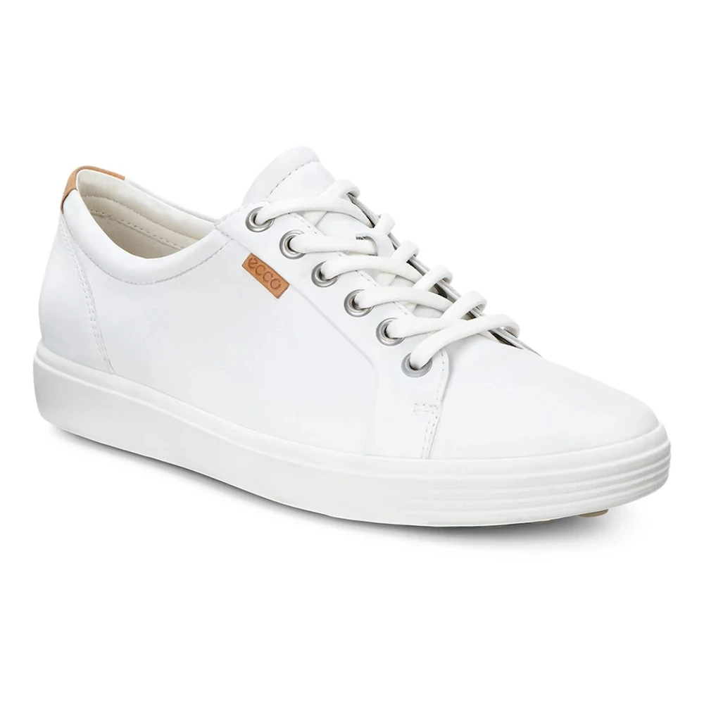Women’s Ecco® Soft VII Sneaker Casual Shoes :: Sneakers are big news this season, and these long-lace leather trainers with a contrasting sole take all the essential design elements and combine them into one quality style. The Ecco® Comfort Fiber Systemâ„¢ ensures that your feet stay cool and fresh, and the anatomically accurate design maximizes all-day comfort.
