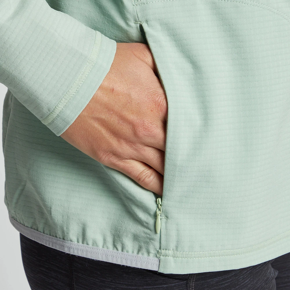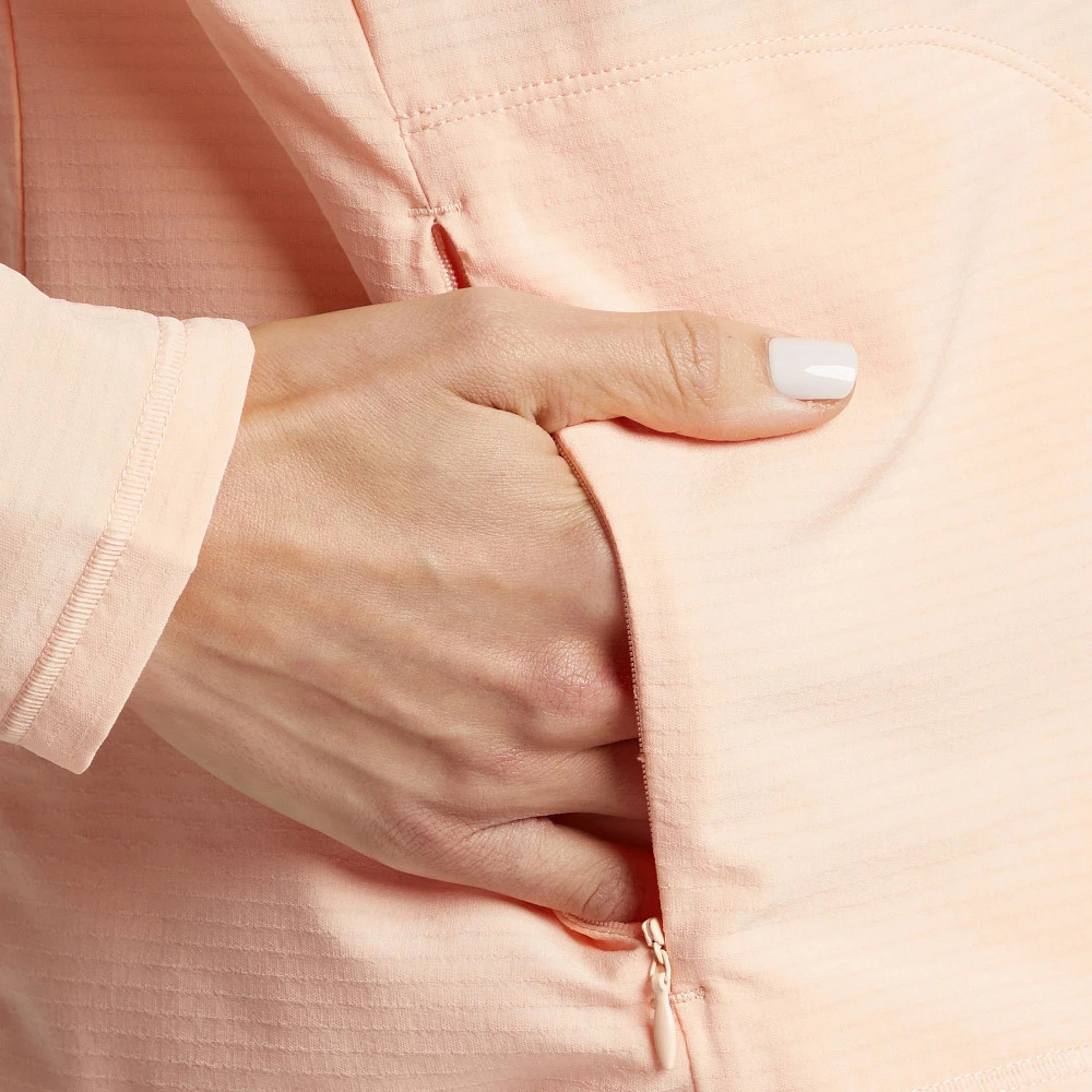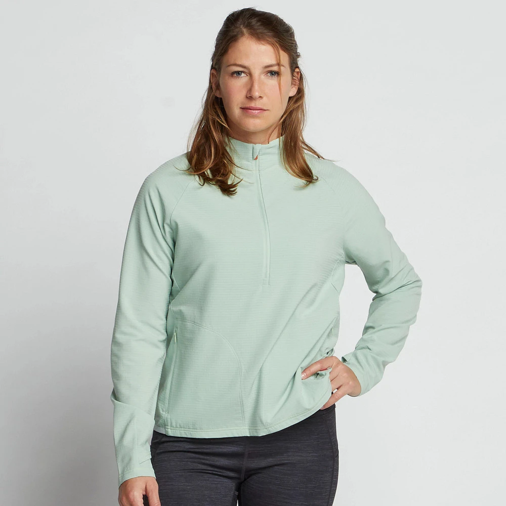 Women’s Korsa Accelerate 1/4 Zip :: Zippered versatility. Your Accelerate 1/4 Zip is the best choice for your next set of sprints. This semi cropped top hits right at your natural waist and features invisible zip pockets hidden in the side panels to stash your keys or snacks. Plus, with thumbholes at the cuffs and a mesh vent on your back, you’ll stay comfortable and cool no matter how intense things get.