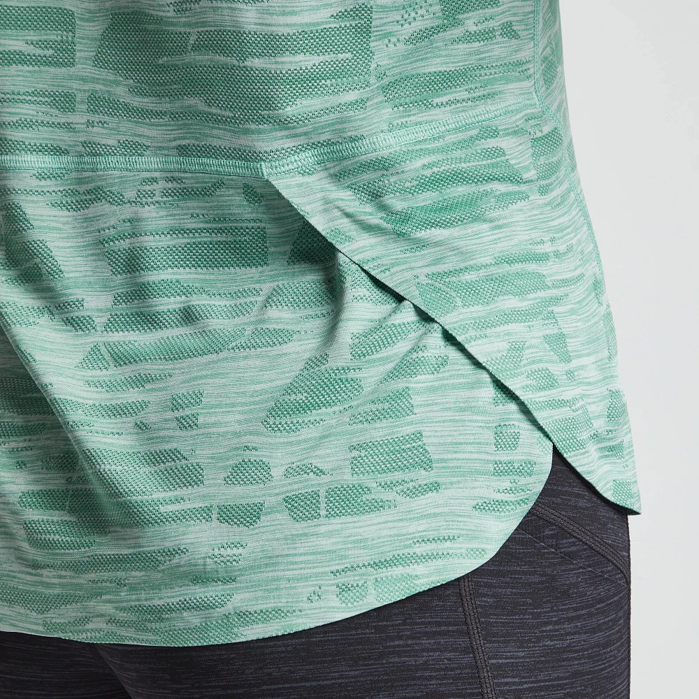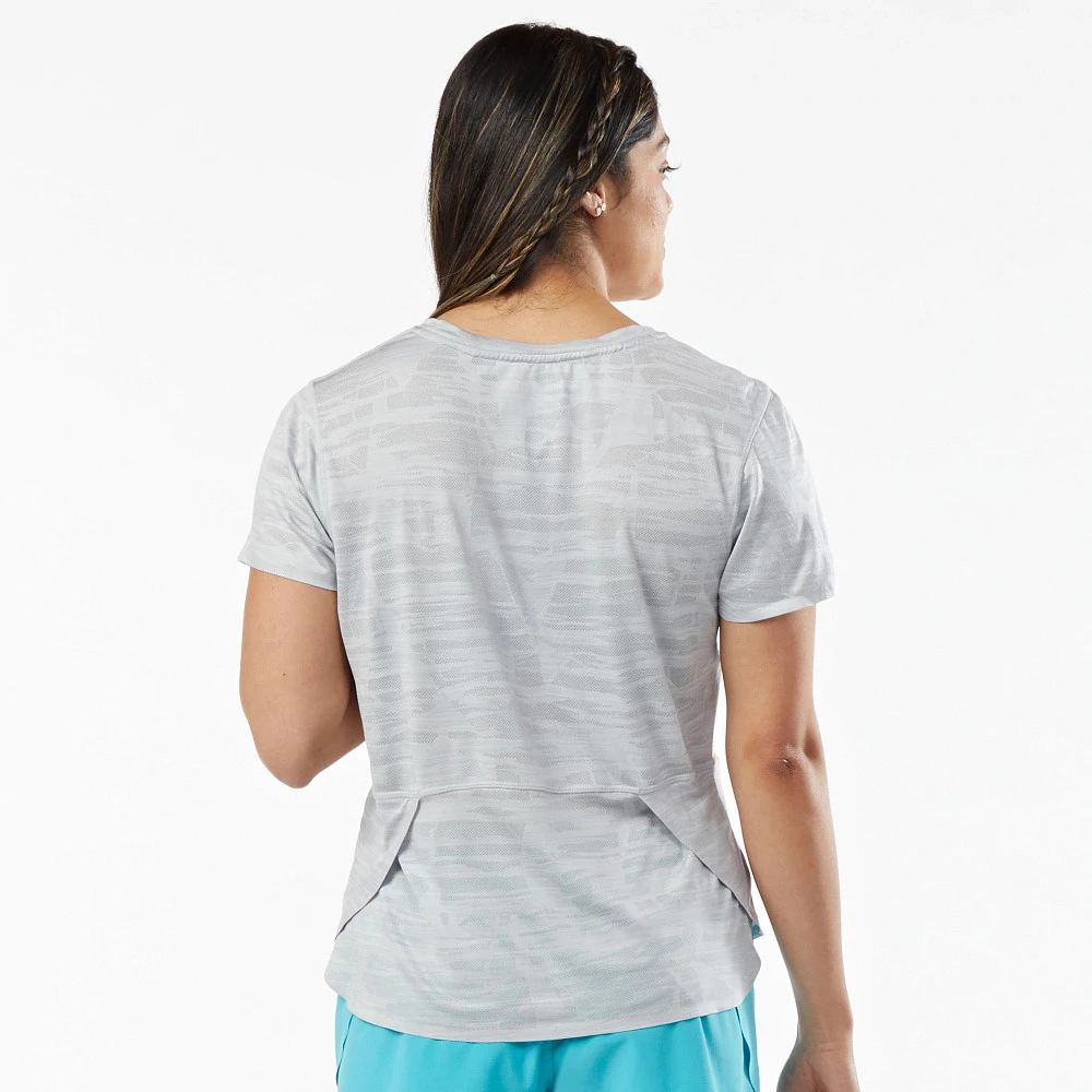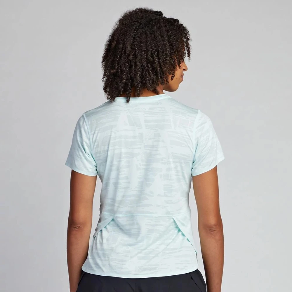 Women’s Korsa Accelerate Short Sleeve Tee :: Don’t sweat it even on the warmest days in this nearly weightless and ultra-breathable engineered jacquard short sleeve run tee. Overlapping side vents allow greater mobility and ensure a comfortably cool run or training session.