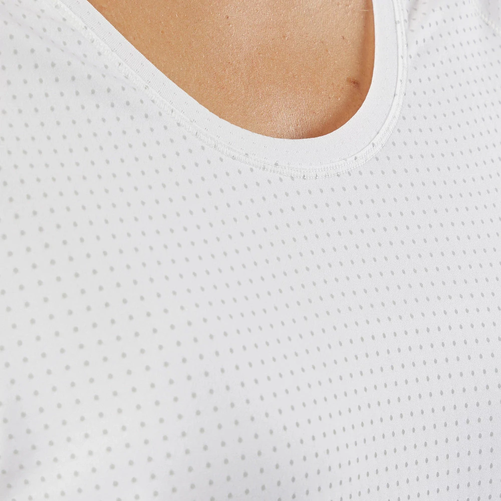 - Distraction-Free: Scoop neck front for moderate coverage and logo elastic at back of the neck to keep the collar seam from chafing.