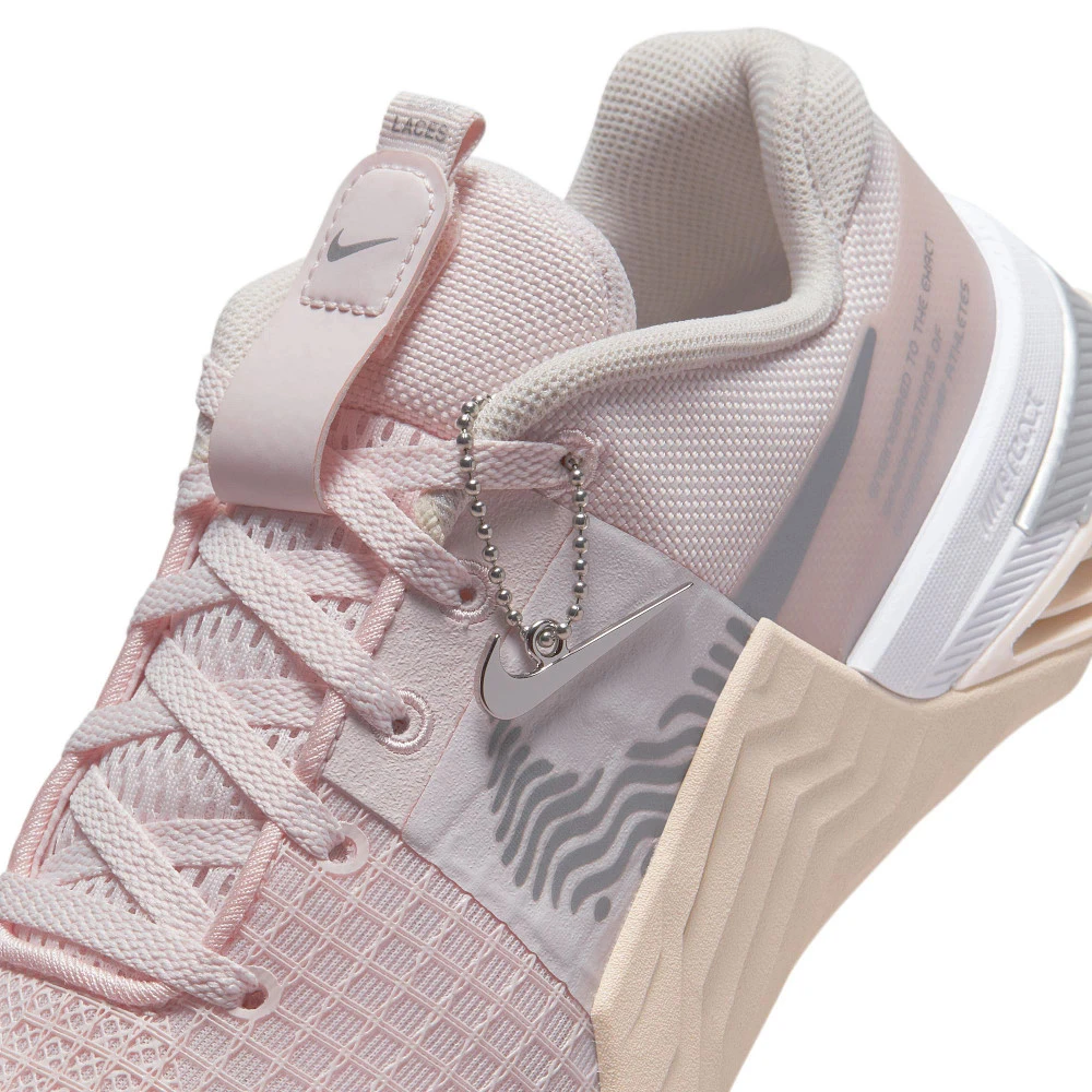 Women’s NIKE® METCON 8 MTL :: Chase the clock and encourage each other pushing dumbbells and pulling kettle bells. Better than ever, Women’s Nike Metcon 8 MTL, is taking center stage with an upper that’s more breathable and efficient, ready for any activity you take on. Your weight is perfectly distributed for optimal performance thanks to Nike adding a flexible inner plate that stabilizes your stride on cardio days. When you’re ready to get back in the gym, a grippy rubber wraps around your arch helping you climb ropes with more confidence. A stunning colorway keeps you showing up feeling like a winner both on and off the podium.