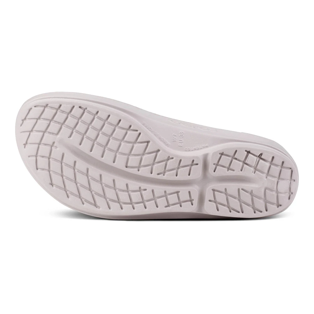 Women’s OOFOS® OOLALA SANDAL :: Add fashionable flair to your best feeling post-run/workout footwear with the New Women’s OOFOS OOlala Sandal. Let your feet take a break and your body recover after a challenging workout or a long work day in this lightweight, incredibly comfortable, sleek looking sandal. Score a supportive, customized fit from the unparalleled OOfoam technology that conforms to the shape of your foot and absorbs 37% more impact than the standard foam used in footwear. The slimmer silhouette is deisgned specifically for women, and you can count on these fantastic sandals to hold up for the long haul thanks to their waterproof, highly durable materials!