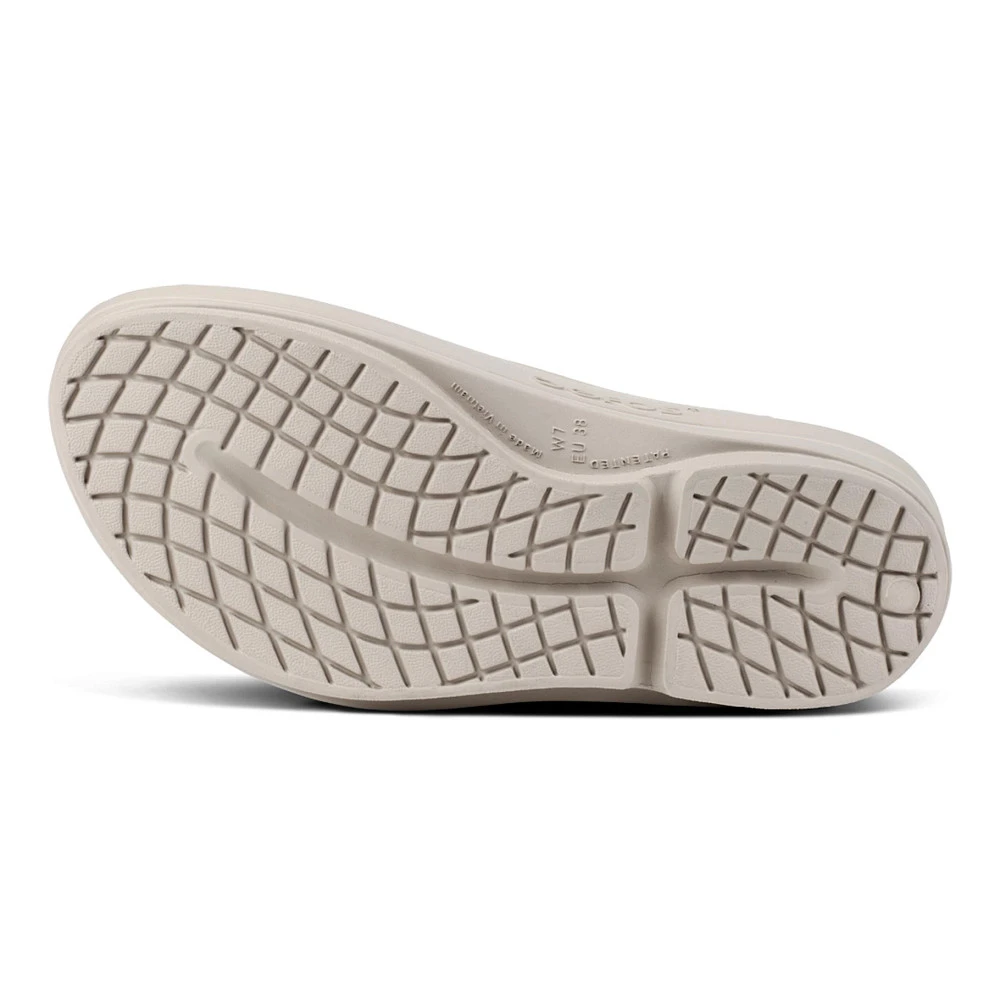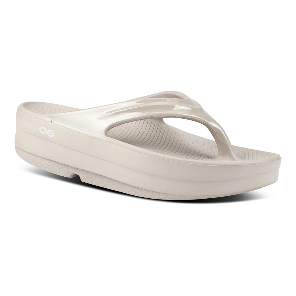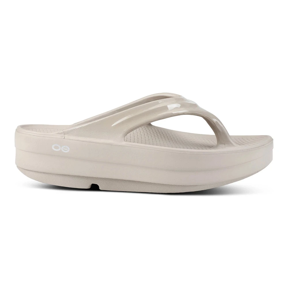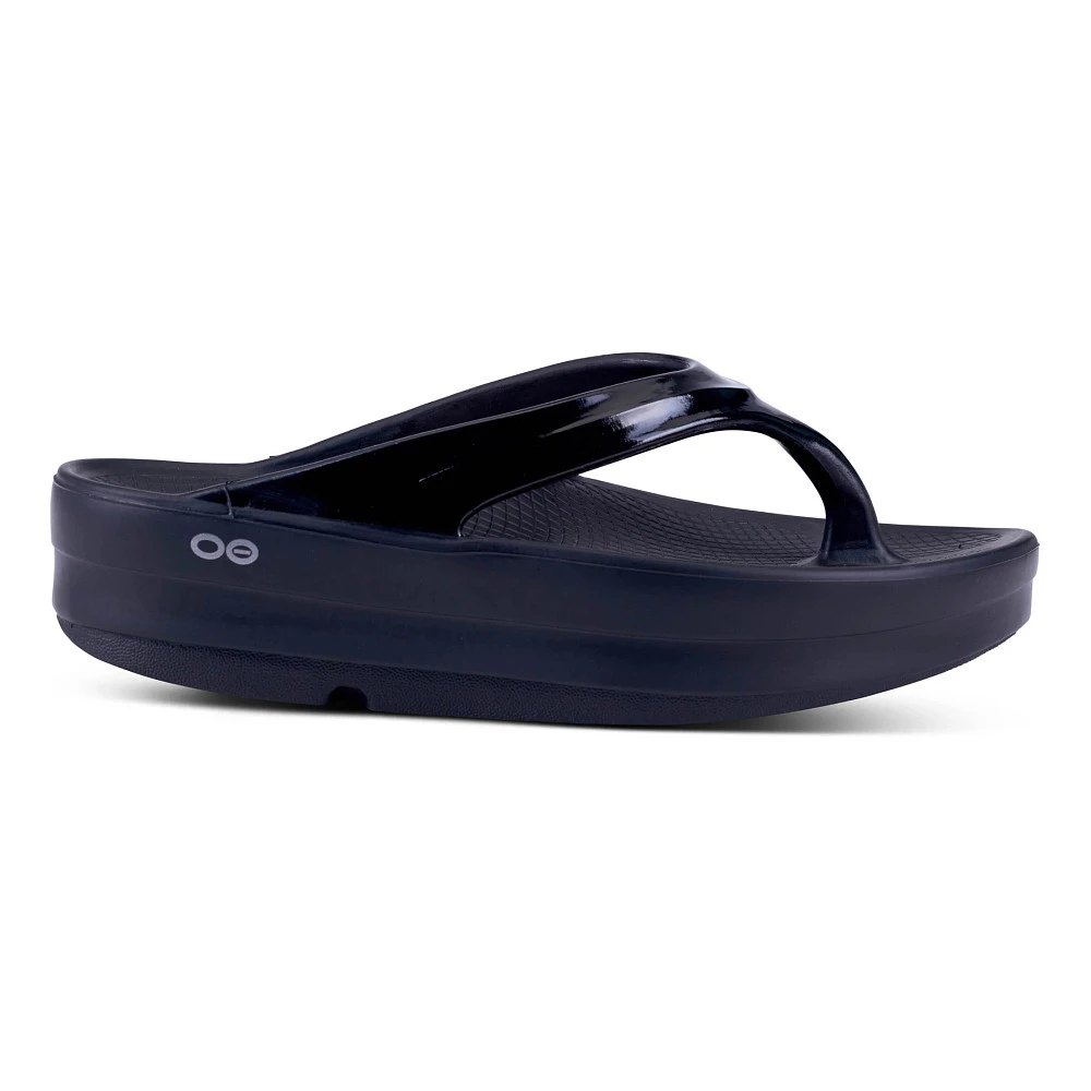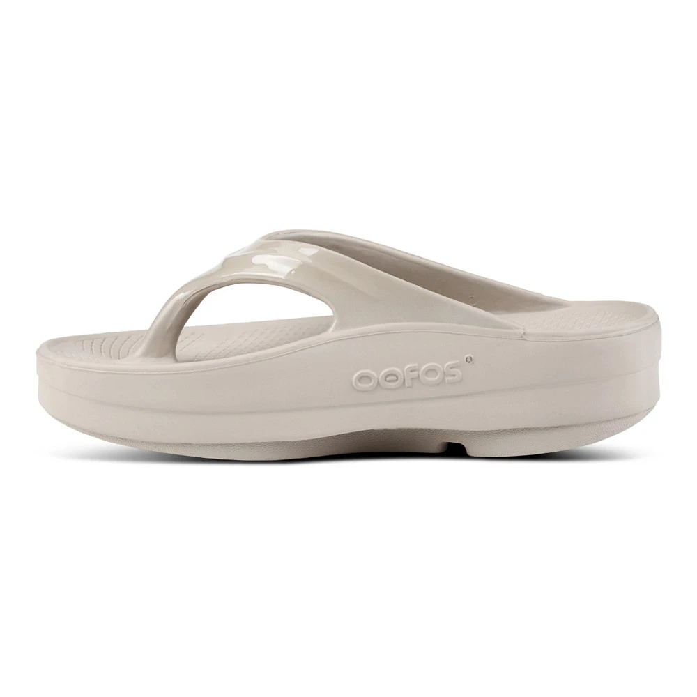 Women’s OOFOS® OOMEGA THONG :: A trailblazer in platform sandal fashion and function. If you liked the OOlala, you’ll love your new Women’s OOFOS OOmega Thong, bringing the same impact absorbing OOfoamâ„¢ footbed but with a twist. OOFOS designed this style with a MEGA midsole, increasing the protection and comfort under your foot by 15mm. Restore your feet after a long day of training and go show them off on the town wearing the OOmega Thong.
