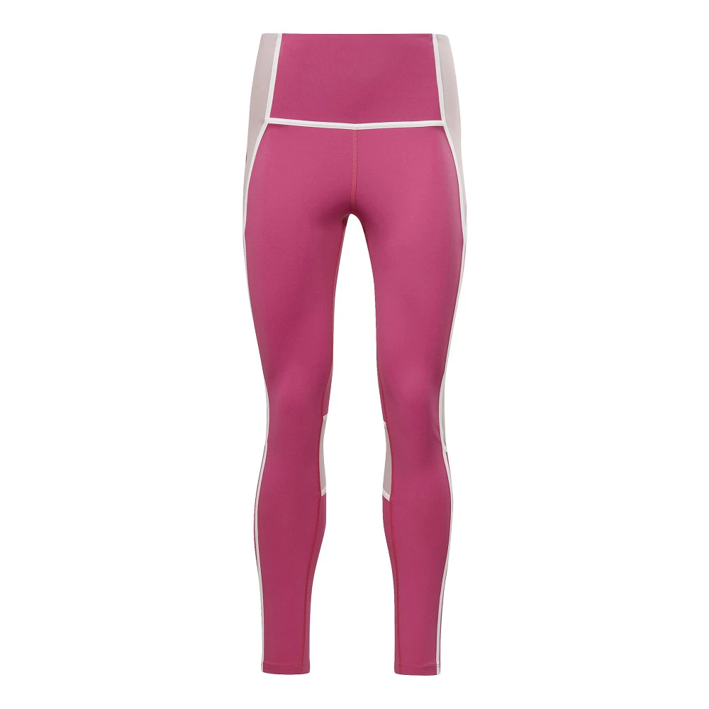 Women’s Reebok® Lux High-Waisted Colorblock Tights :: Make your workout the best hour of your day. These women’s Reebok training tights perform in HIIT class and look good at the juice bar afterwards. Speedwick technology keeps you dry at any pace. Flat, curved seams provide an irritation-free and flattering fit.